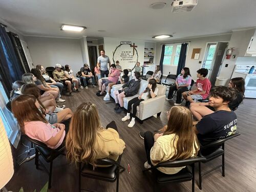 Sunday Night during worship service, children K-5th grade meet for small group for worship, bible teaching and games. The students 6-12th grade meet at the Youth house next to the church for bible study, worship and games.